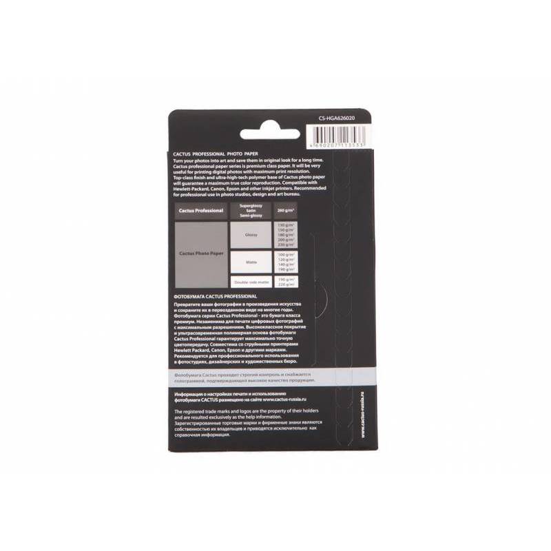Фотобумага Cactus Prof CS-HGA626020 10x15/260г/м2/20л./белый глянцевое для струйной печати