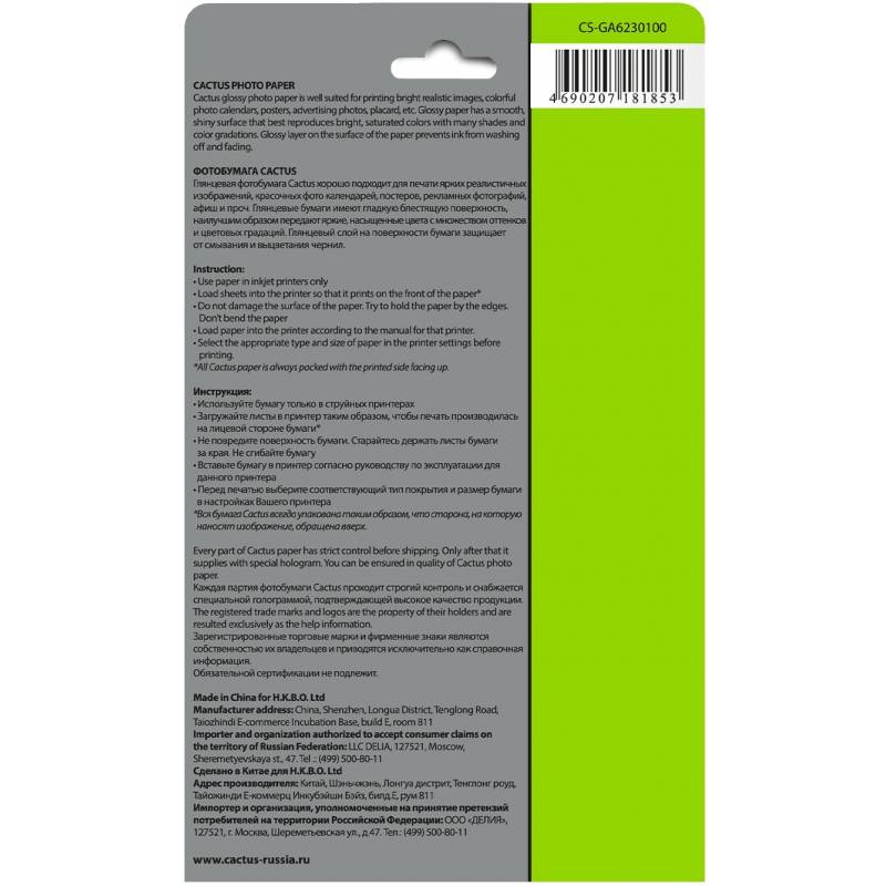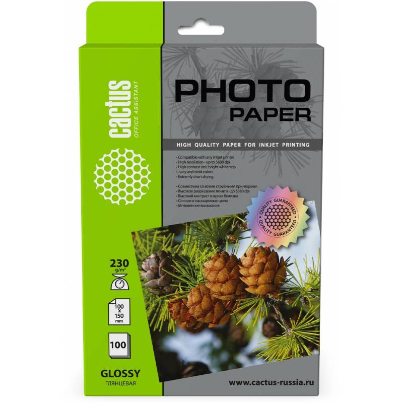 Фотобумага Cactus CS-GA6230100 10x15/230г/м2/белый/100л. глянцевое для струйной печати