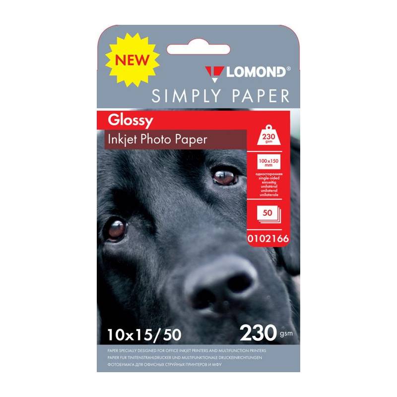 Бумага Lomond Simply 0102166 10x15/230г/м2/50л./белый CIE148% глянцевое для струйной печати