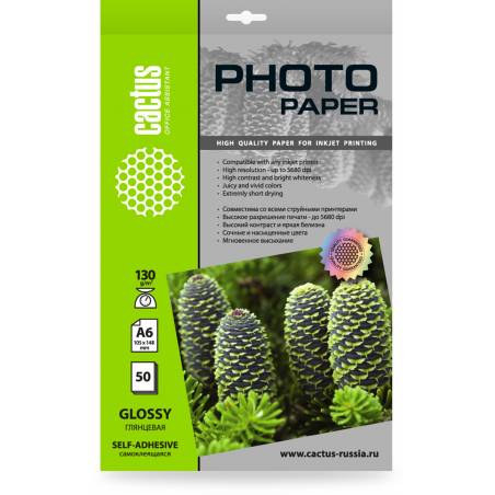 Фотобумага Cactus CS-GSA613050 A6/130г/м2/50л. глянцевое самоклей. для струйной печати