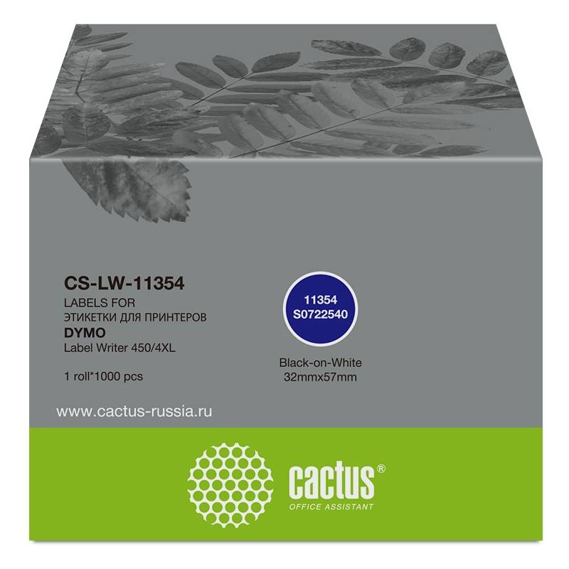Этикетки Cactus CS-LW-11354 сег.:57x32мм черный белый 1000шт/рул Dymo Label Writer 450/4XL