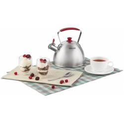 - Изысканная сатинированная полировка корпуса. Аксессуары: силиконовая накладка на клапане свистка. Стальная ручка с силиконовой вставкой. Преимущества: возможность налива воды одной рукой. Удобный хват. Фиксируемый клапан свистка. Упаковка: под