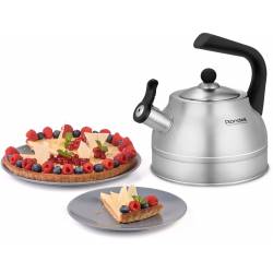 - Эффектная матированная полировка. Аксессуары: прочные ненагревающиеся бакелитовые. Преимущества: цельный индукционный диск. Удобный хват. Возможность налива воды одной рукой. Бакелитовый свисток со стальной сердцевиной. Упаковка: подарочная ко