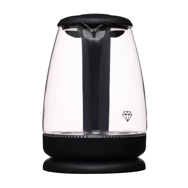 - В чайнике используется высококачественное боросиликатное стекло, легкое, прочное, не темнеет и не окрашивается со временем. Красивая голубая LED подсветка украшает процесс закипания и оповещает о включении прибора. 2 года гарантии.