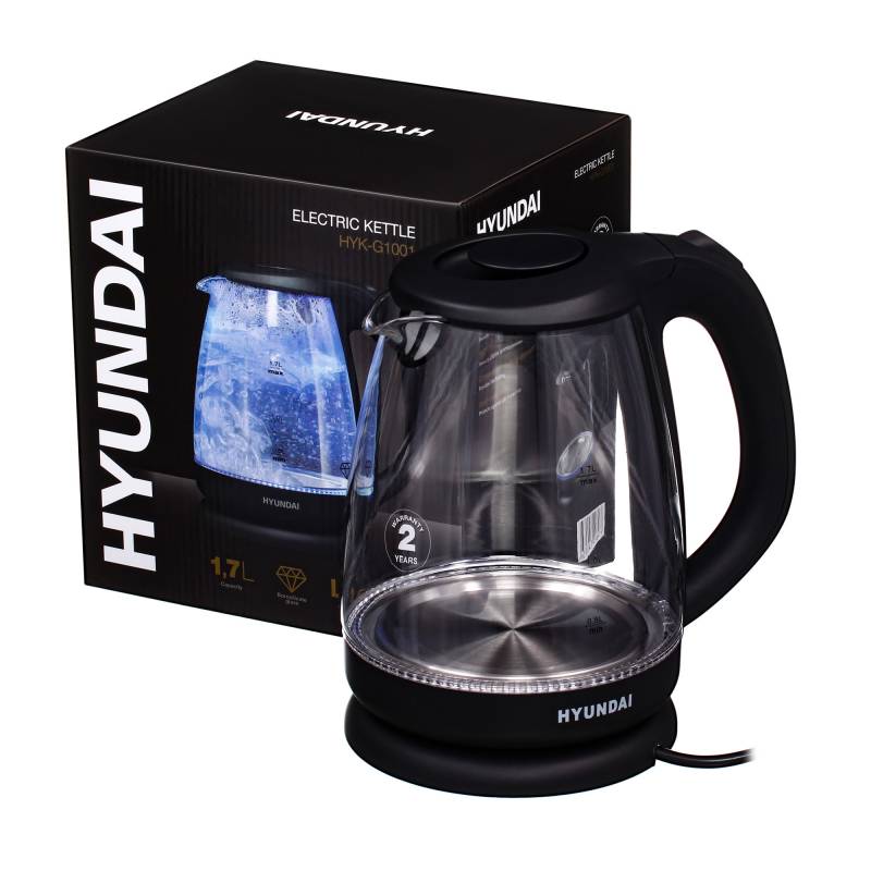 Чайник электрический Hyundai HYK-G1001 1.7л. 2200Вт черный корпус: стекло/пластик