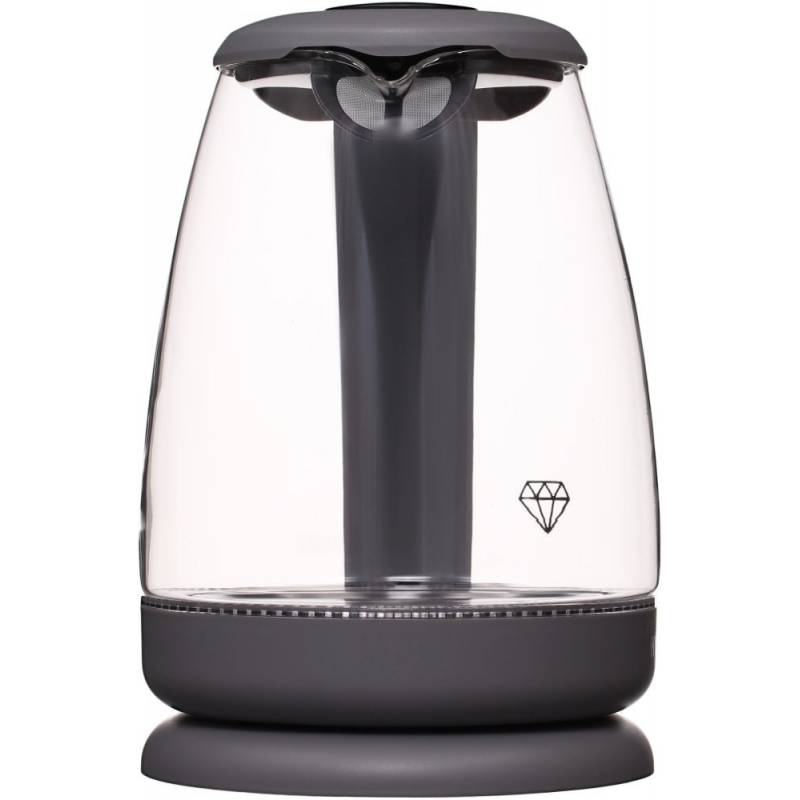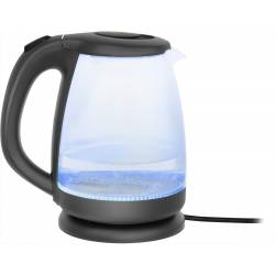 - В чайнике используется высококачественное боросиликатное стекло, легкое, прочное, не темнеет и не окрашивается со временем. Красивая голубая LED подсветка украшает процесс закипания и оповещает о включении прибора. 2 года гарантии.