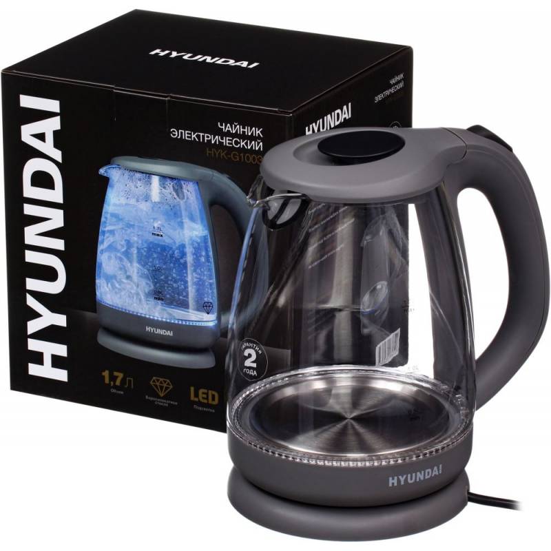 Чайник электрический Hyundai HYK-G1003 1.7л. 2200Вт серый корпус: стекло/пластик