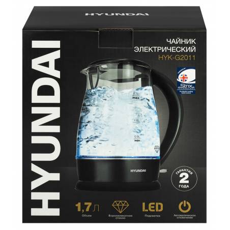 Чайник электрический Hyundai HYK-G2011 1.7л. 2200Вт черный корпус: стекло/пластик