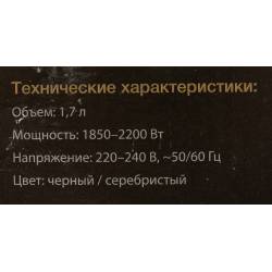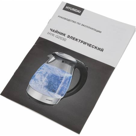 Чайник электрический Hyundai HYK-G2030 1.7л. 2200Вт черный корпус: стекло/пластик