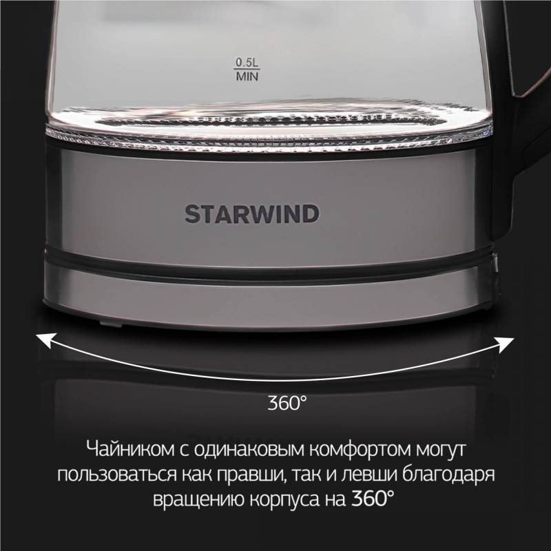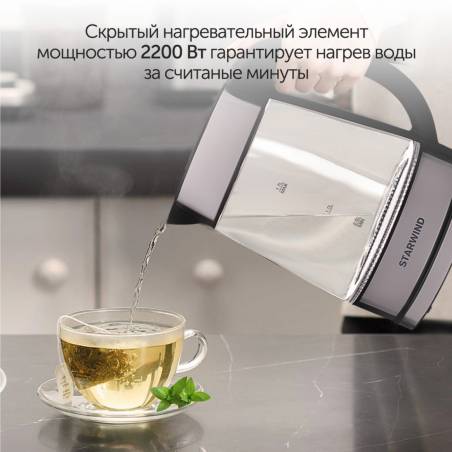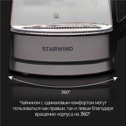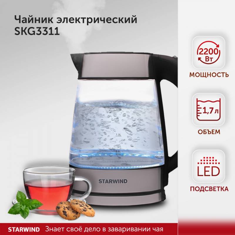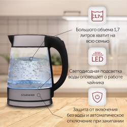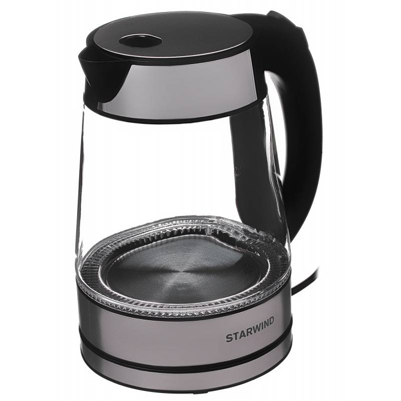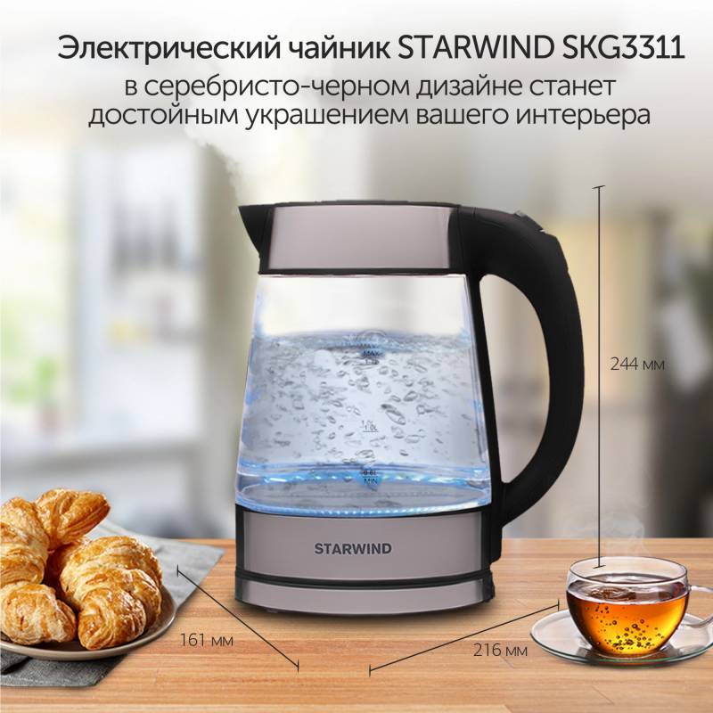 Чайник электрический Starwind SKG3311 1.7л. 2200Вт черный/серебристый корпус: стекло/металл/пластик