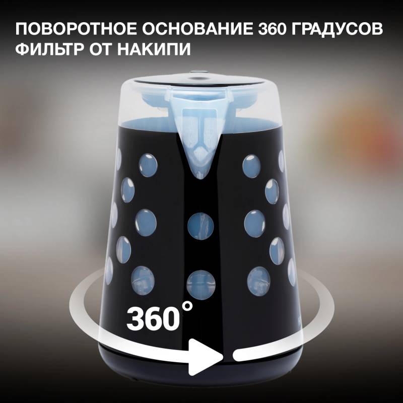 - кнопка открытия крышки, подсветка воды, подставка 360, фильтр от накипи