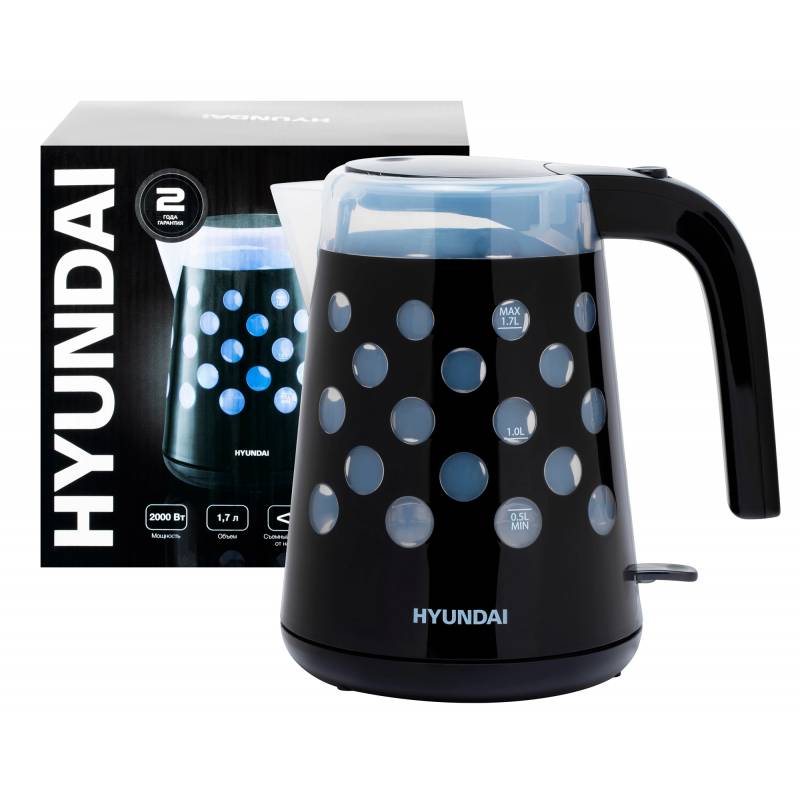 Чайник электрический Hyundai HYK-G2012 1.7л. 2000Вт черный/прозрачный корпус: пластик