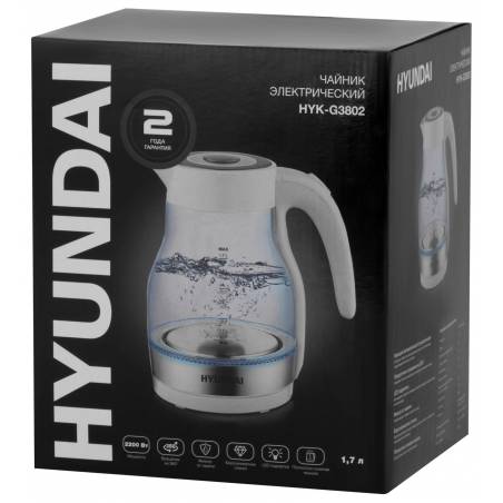 Чайник электрический Hyundai HYK-G3802 1.7л. 2200Вт белый/серебристый корпус: стекло