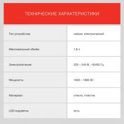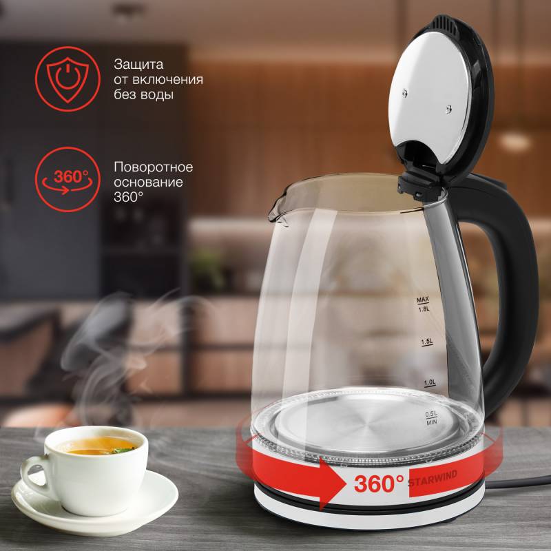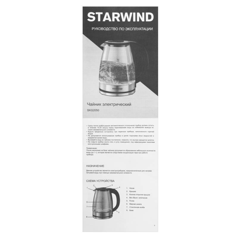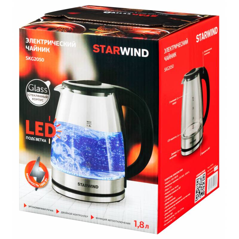 Чайник электрический Starwind SKG2050 1.8л. 1800Вт черный/серебристый корпус: стекло/пластик