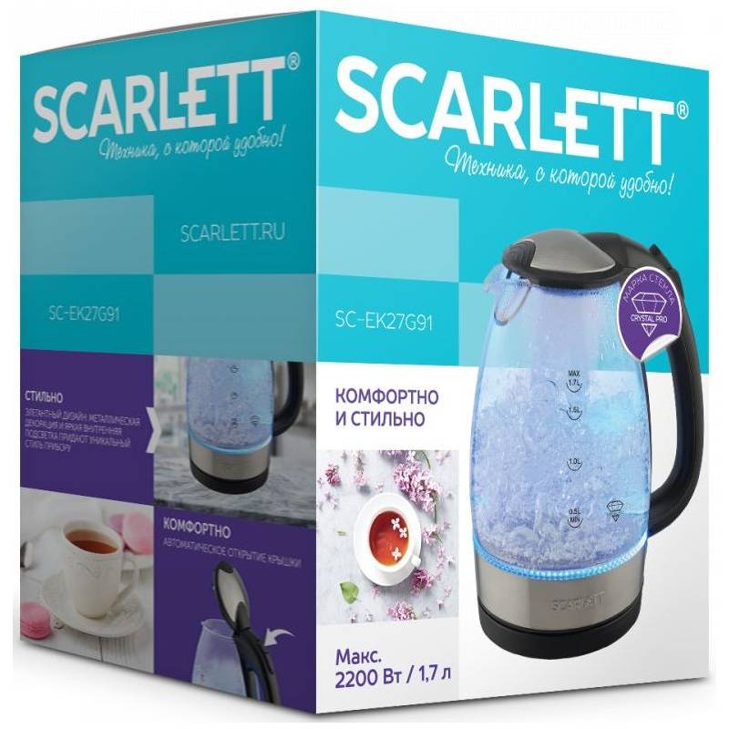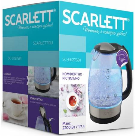 Чайник электрический Scarlett SC-EK27G91 1.7л. черный корпус: стекло/пластик (EK27G91)