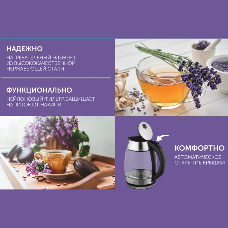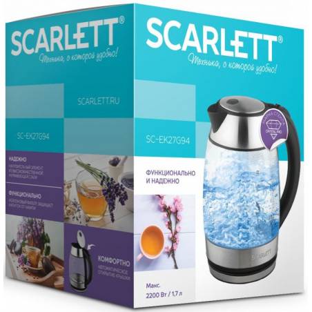 Чайник электрический Scarlett SC-EK27G94 1.7л. 2200Вт нержавеющая сталь корпус: стекло/металл (EK27G94)