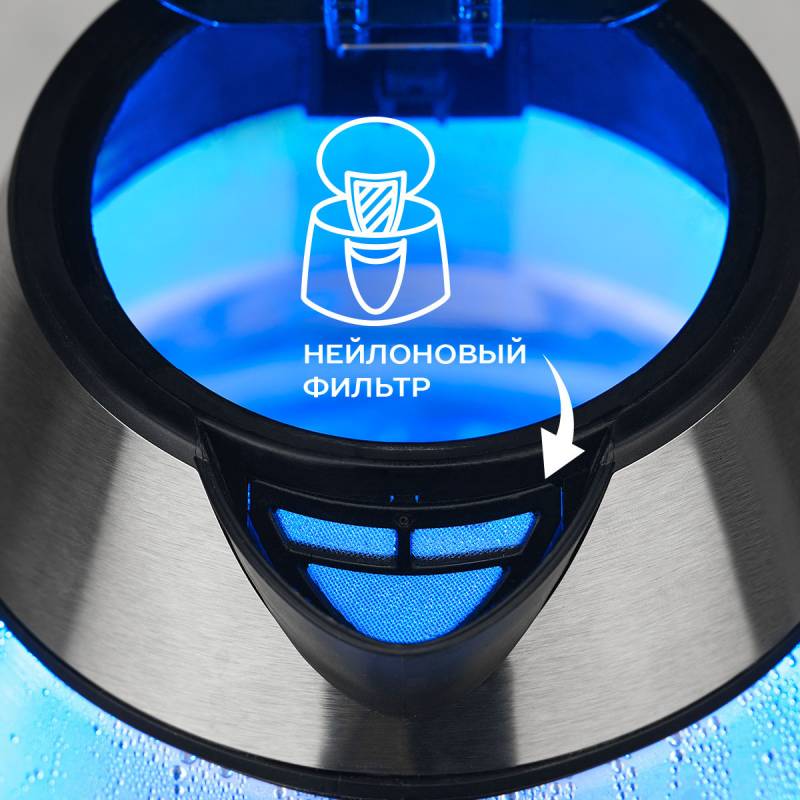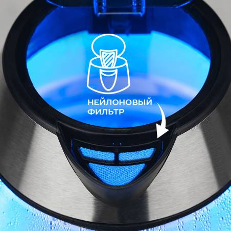 - кнопка открытия крышки, подсветка воды, фильтр от накипи