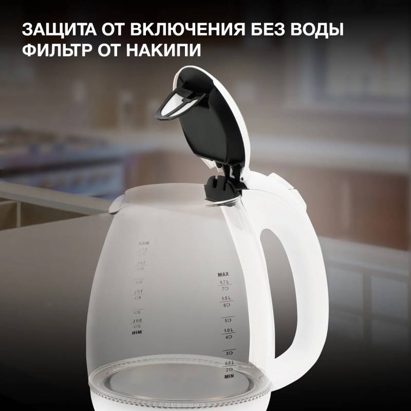 Чайник электрический Hyundai HYK-G3805 1.7л. 2200Вт белый/прозрачный корпус: стекло