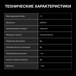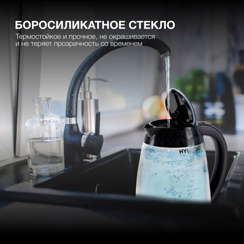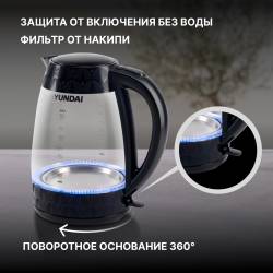 Чайник электрический Hyundai HYK-G4505 2л. 2200Вт черный корпус: стекло/пластик