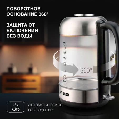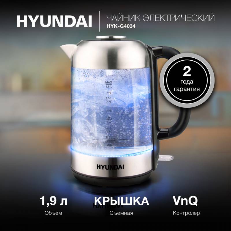 Чайник электрический Hyundai HYK-G4034 1.8л. 2200Вт черный/прозрачный корпус: стекло/пластик