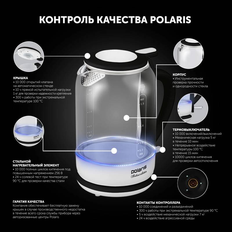 Чайник электрический Polaris PWK 1753CGL 1.5л. 1950Вт белый/черный корпус: стекло/пластик