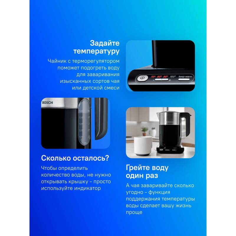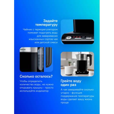 Чайник электрический Bosch TWK8613P 1.5л. 2400Вт черный/серебристый корпус: металл/пластик