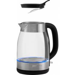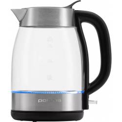 Чайник электрический Polaris PWK 1817CGL 1.8л. 2200Вт нержавеющая сталь/черный корпус: стекло/металл