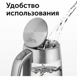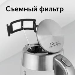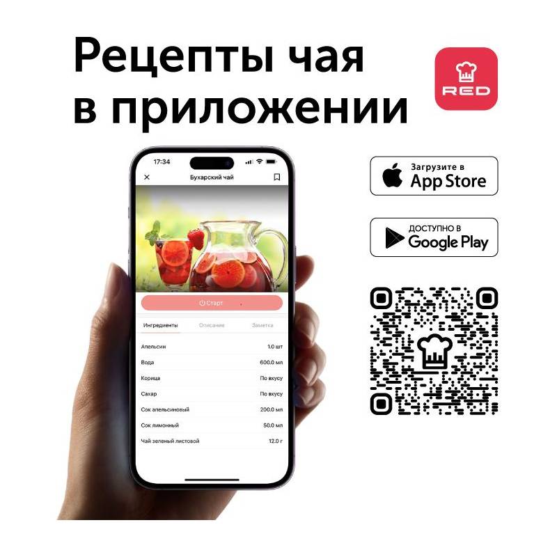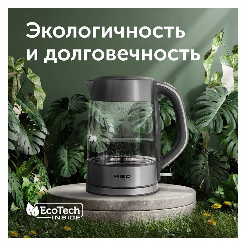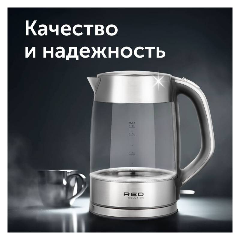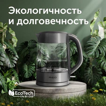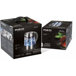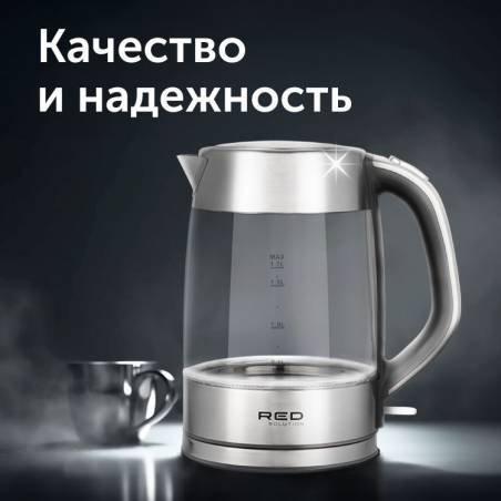 - Электрический чайник RED RK-G138 – современный прибор для быстрого нагревания и кипячения воды со съемным фильтром от накипи.