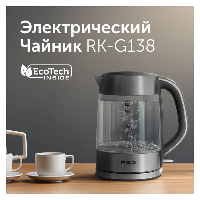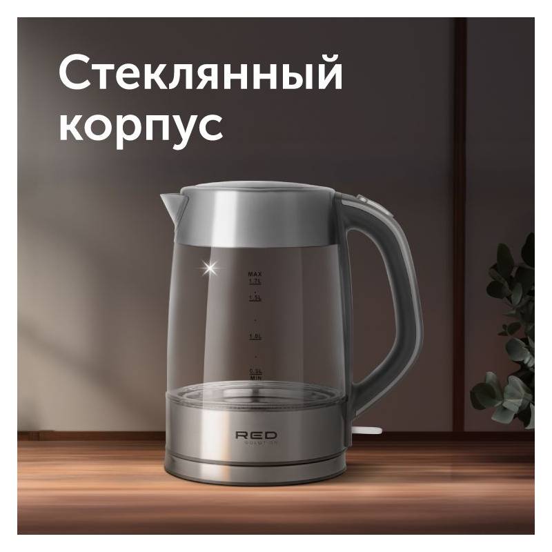 Чайник электрический Red Solution RK-G138 1.7л. 2200Вт серый корпус: стекло