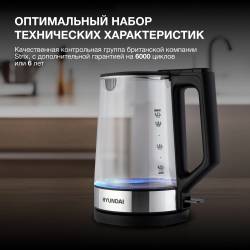 Чайник электрический Hyundai HYK-G8808 1.7л. 2200Вт черный/серебристый корпус: стекло