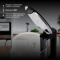 - кнопка открытия крышки, подсветка воды, подставка 360