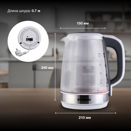 Чайник электрический Hyundai HYK-G8880 2л. 2200Вт серый/серебристый корпус: стекло