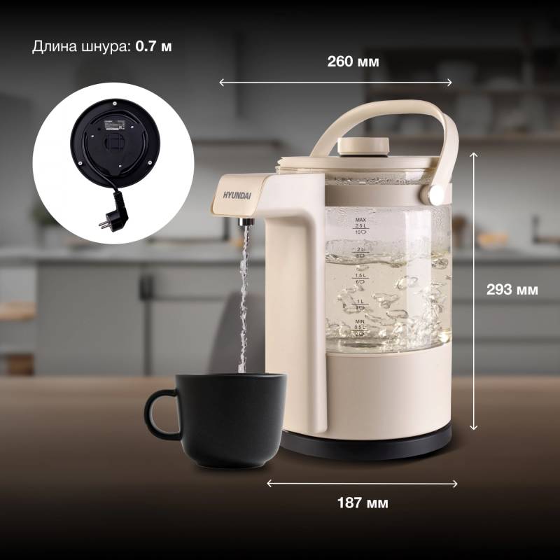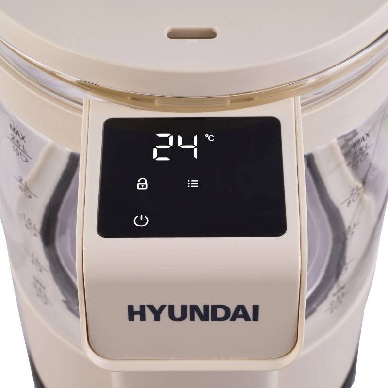 Чайник электрический Hyundai HYK-G7700 2.5л. 1400Вт кремовый/черный корпус: стекло