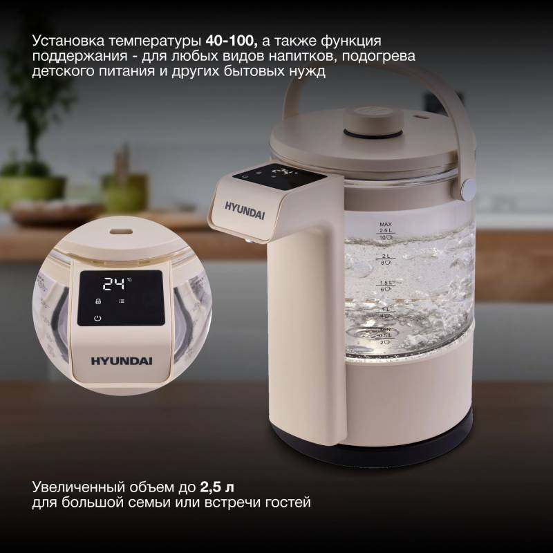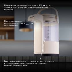 - Выбор температур 40-100°С с шагом в 5 градусов. Таймер работы и поддержание заданной температуры. Блокировка от детей или случайного розлива. Дисплей с индикацией текущей температуры и установок. Розлив по нажатию.