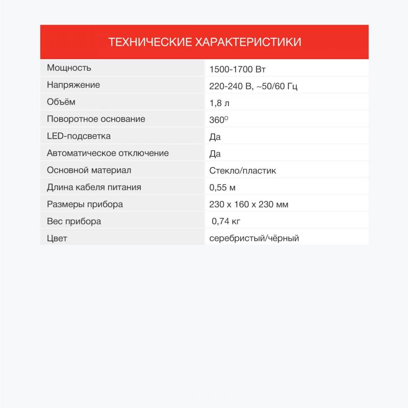 Чайник электрический Starwind SKG1779 1.8л. 1700Вт прозрачный/черный корпус: стекло