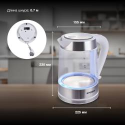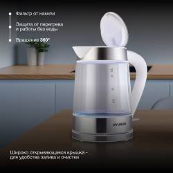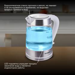Чайник электрический Hyundai HYK-G3606 1.7л. 2200Вт белый/прозрачный корпус: стекло