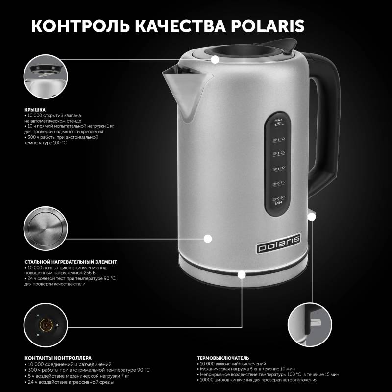 Чайник электрический Polaris PWK 1729CA 1.7л. 2200Вт сталь корпус: металл
