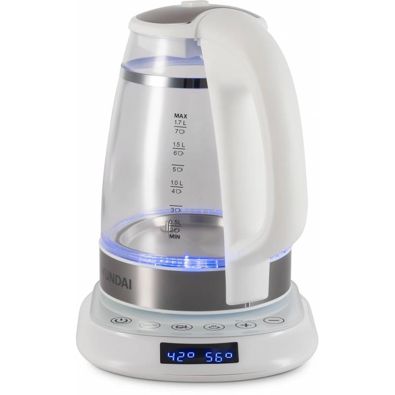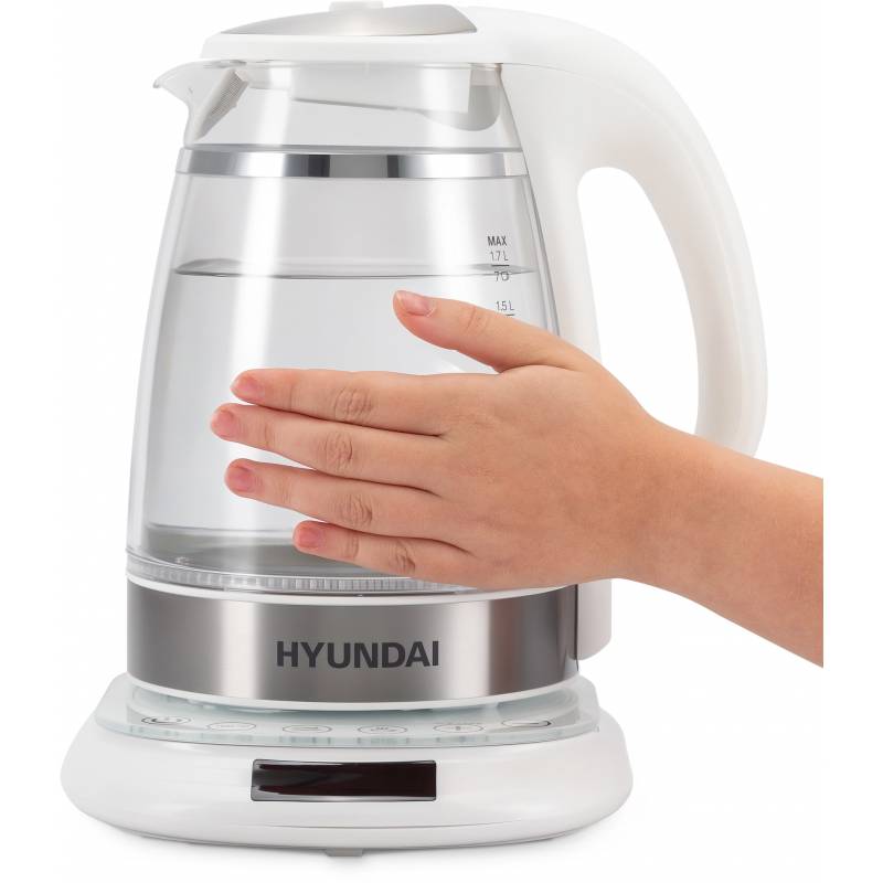 Чайник электрический Hyundai HYK-G5507 1.7л. 2200Вт белый/серебристый корпус: стекло