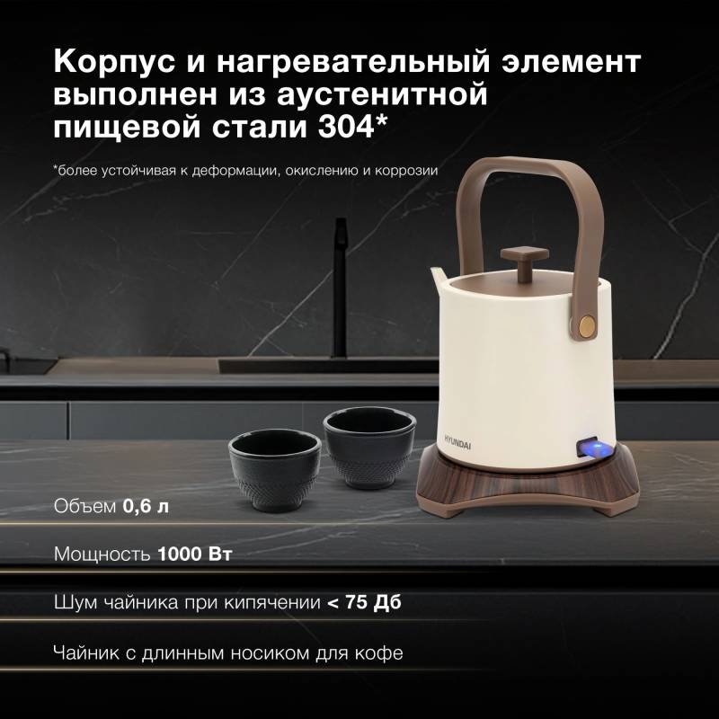 Чайник электрический Hyundai HYK-S2043 0.6л. 1000Вт кремовый/коричневый корпус: металл