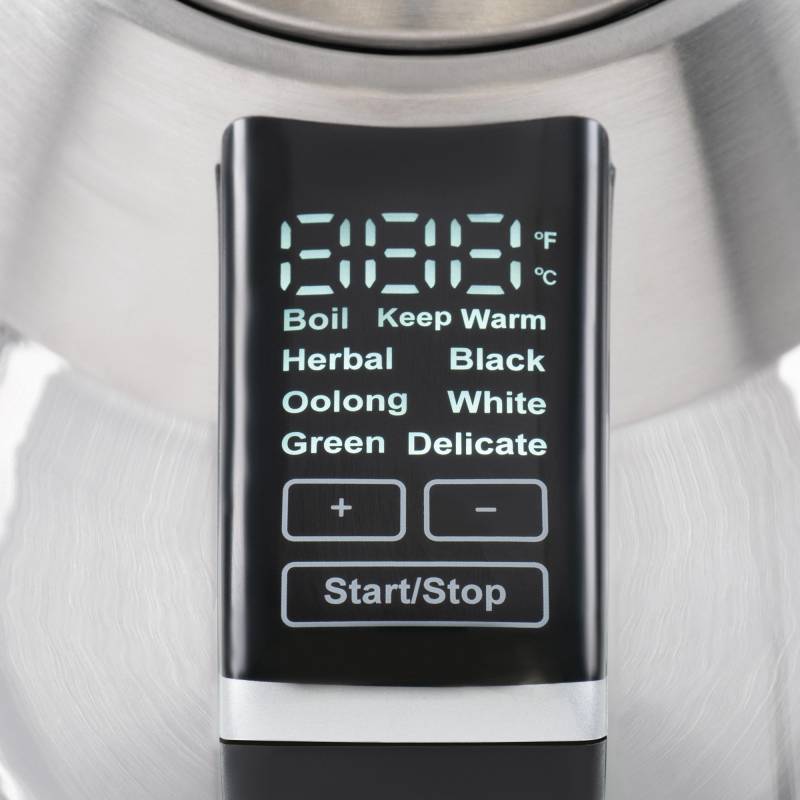 - Информационный дисплей, сенсорное управление установками температуры 40-100С и функцией поддержания, для любых напитков и бытовых нужд. Широкий носик и фильтр от накипи.