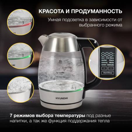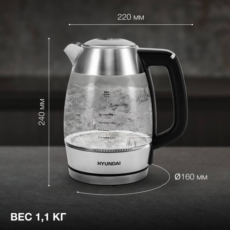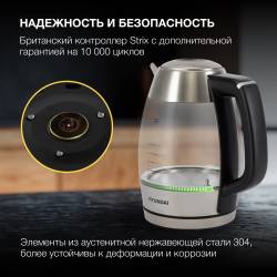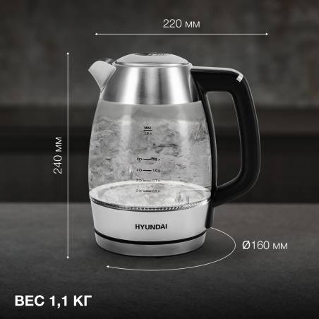 Чайник электрический Hyundai HYK-G9408 1.9л. 2200Вт черный/серебристый корпус: стекло
