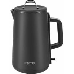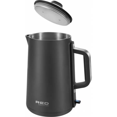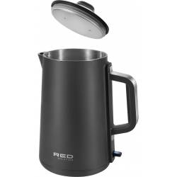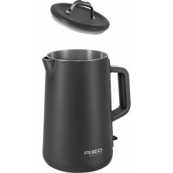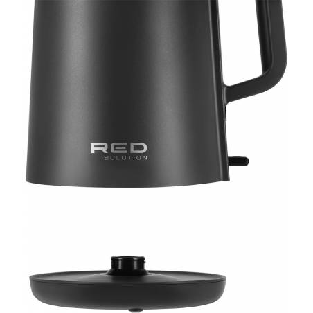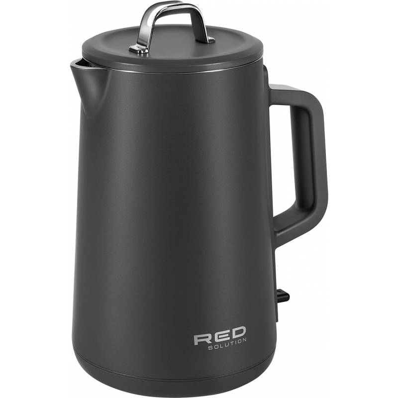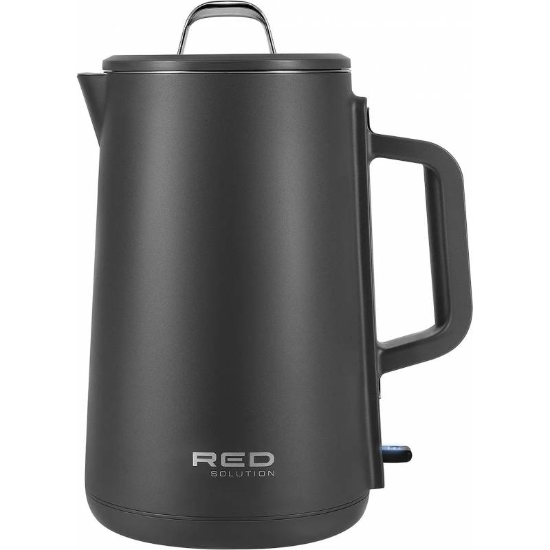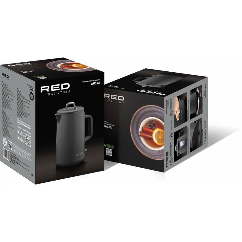 - RED solution AM102 — электрический чайник в строгом минималистичном дизайне. Матовый корпус цвета графита и хромированная ручка дополнят кухонную фурнитуру и бытовую технику. Благодаря двойной стенке вода в чайнике остывает медленнее, а корпус не нагревае