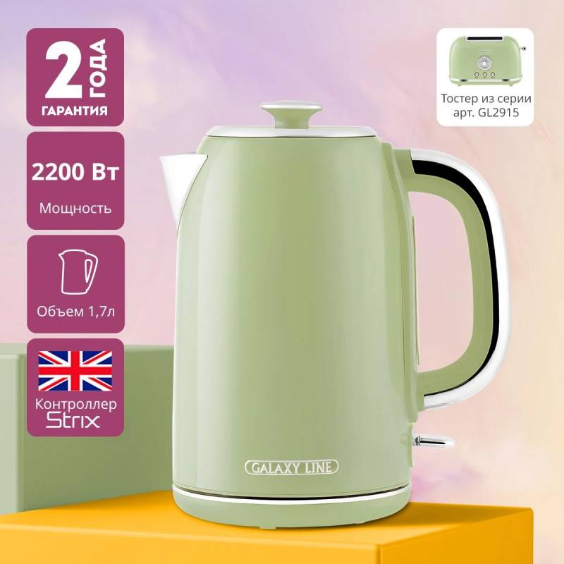 Чайник электрический Galaxy Line GL 0344 1.7л. 2200Вт оливковый корпус: нерж.сталь (ГЛ0344Л)