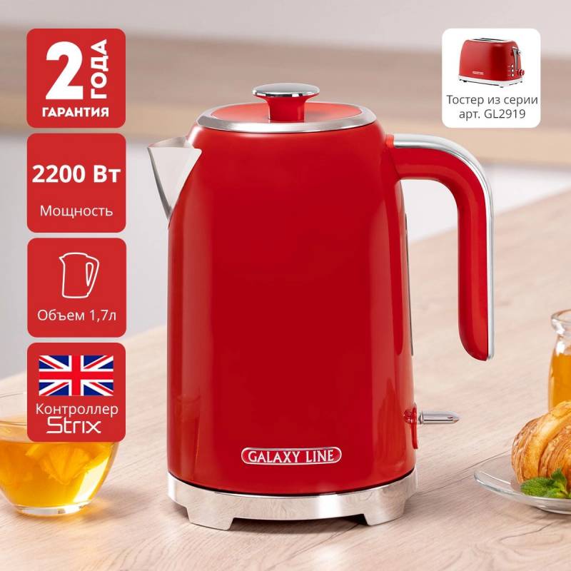Чайник электрический Galaxy Line GL 0349 1.7л. 2200Вт красный корпус: нерж.сталь (ГЛ0349Л)