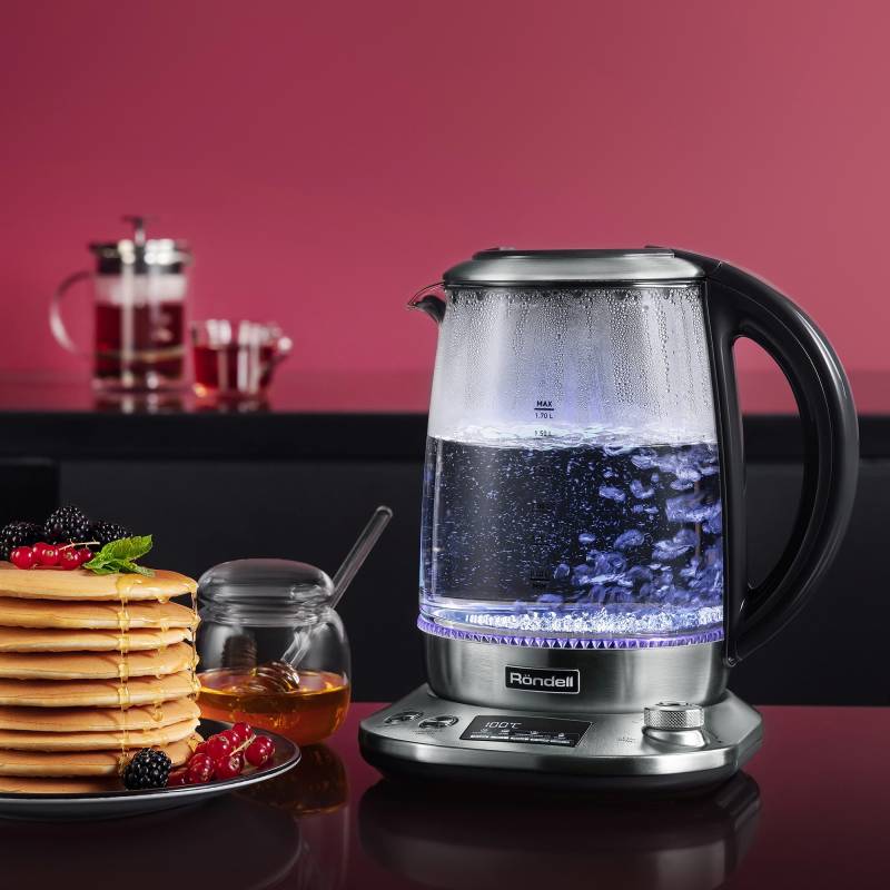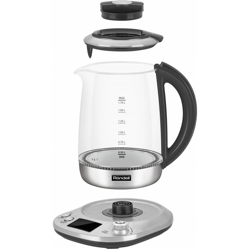 Чайник электрический Rondell RDE-1003 1.7л. 2200Вт черный корпус: стекло/металл