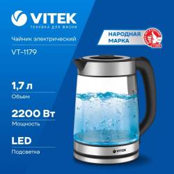 Чайник электрический Vitek VT-1179 1.8л. 2200Вт серебристый корпус: стекло/металл