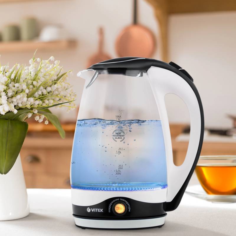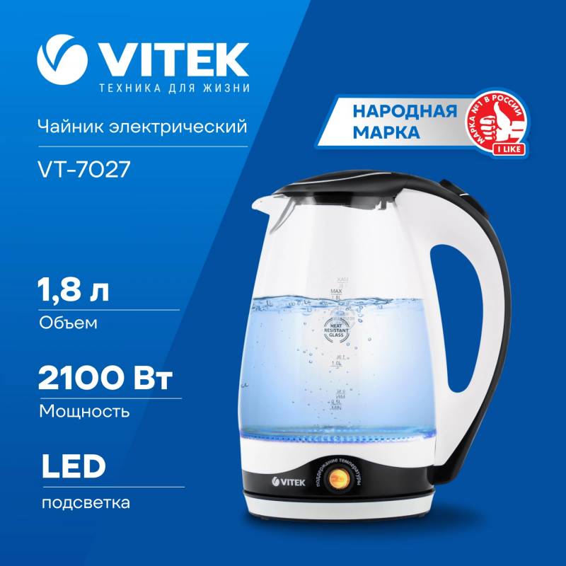 Чайник электрический Vitek VT-7027 1.8л. 2200Вт черный корпус: стекло