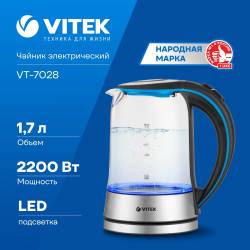 Чайник электрический Vitek VT-7028 1.7л. 2200Вт прозрачный корпус: стекло