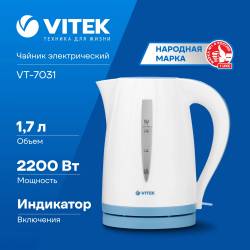 Чайник электрический Vitek VT-7031 1.7л. 2200Вт белый корпус: пластик