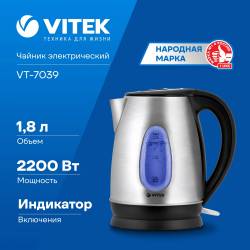 Чайник электрический Vitek VT-7039 1.8л. 2200Вт сталь корпус: металл